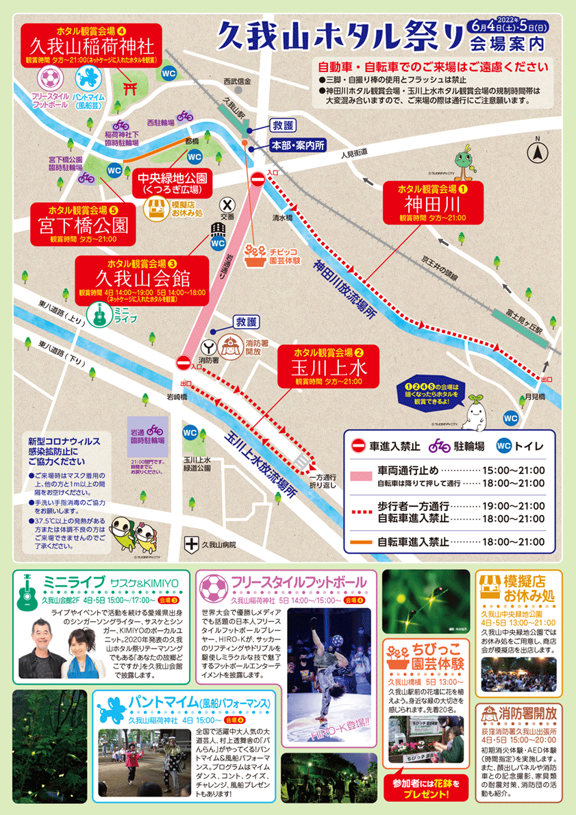 また、「ミニライブ」「風船パフォーマンス」「フリースタイルフットボール」「ちびっこ園芸体験」などイベントも盛りだくさん!