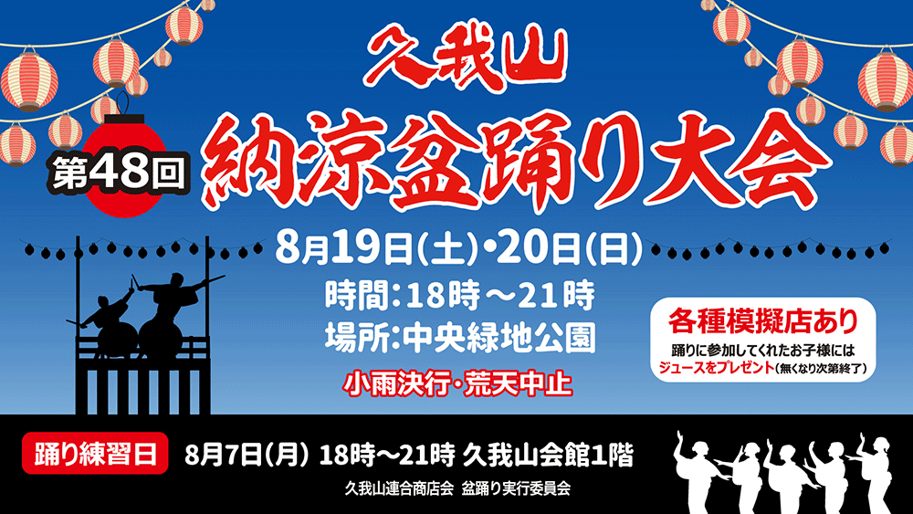 今回で48回目を迎える納涼盆踊り大会。当日は中央緑地公園に櫓を組み、華やかな提灯が数珠つなぎに飾られます。